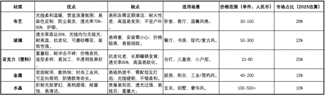 2025年家居趋势是“新中式+北欧混搭”,布艺的丝绸纹理配中式吊灯,温润如玉;亚克力的透明感融北欧美学,清新不膩。淘宝数据显示,布艺“暖光套装”月销10万+,亚克力“简约台灯罩”复购率85%。